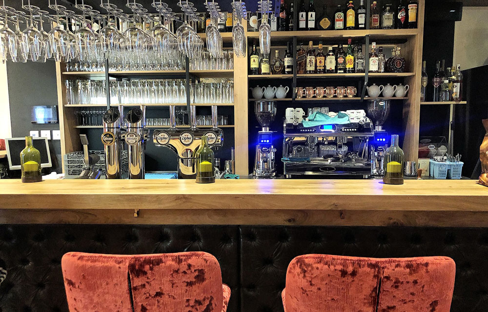 Wir haben überhaupt nichts dagegen, wenn Sie gern länger bleiben oder auch einmal mit Freunden den Nachmittag bei uns verbringen. Damit das so ist, machten wir uns viele Gedanken über die Einrichtung. Damit Sie bequem sitzen können, sind auch die Barhocker gepolstert, und wir achteten bei der Raumeinteilung darauf, dass Sie sowohl zu zweit wie auch in einer größeren Runde eine angenehme Zeit bei uns haben.